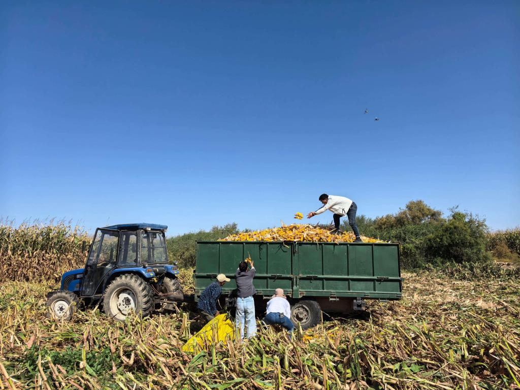 內蒙古巴彥淖爾市種植戶收獲玉米。新華社記者李云平 攝